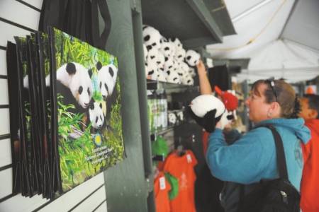 各种以大熊猫为形象设计的礼品最受游客青睐。