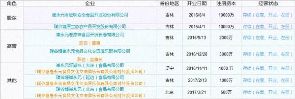 璞谷塘俱乐部对外投资了2016年11月11日注册的崔永元好滋味(大连)食品有限公司、2017年2月13日注册的璞谷塘崔永元(延边)食品有限公司和2017年2月13日注册的璞谷塘崔永元(北京)食品有限公司。此外,崔永元还是崔永元老滋味安全食品开发股份有限公司的股东之一。该公司对外投资了崔永元老滋味食品开发长春有限公司。
