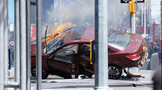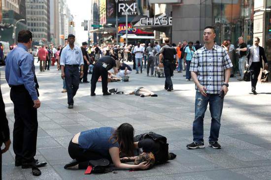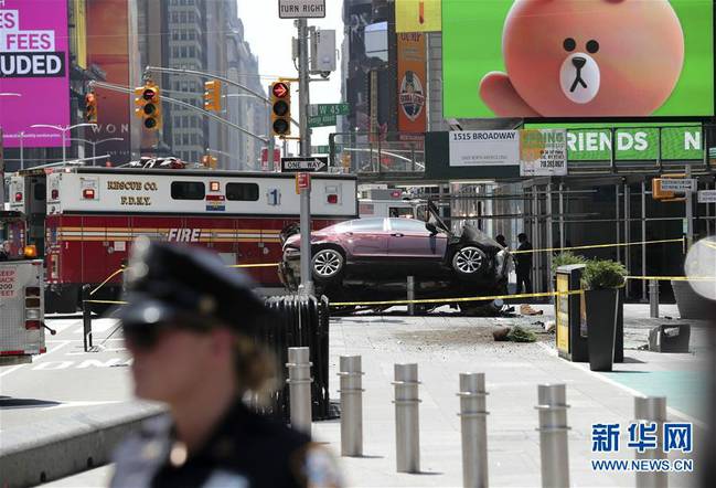 ↑这是在美国纽约时报广场拍摄的汽车冲入人群事件现场(5月18日摄)。新华社记者王迎摄