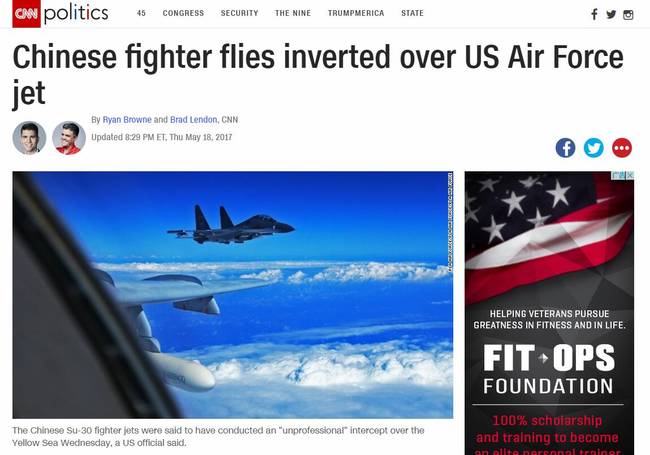 据美国CNN报道,一名美国官员称,中国战斗机当时逼近美军飞机,在其45米范围内飞行,其中一架战机甚至在美军飞机上方进行倒飞。