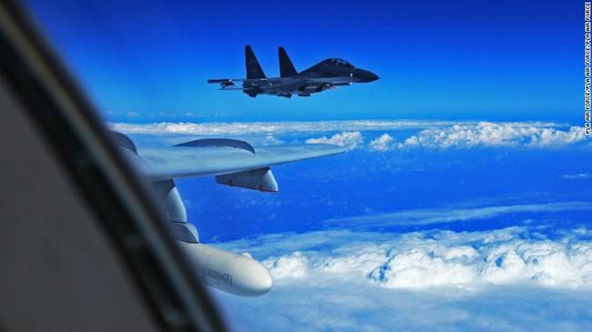 CNN配图,系中国空军苏-30护航轰-6K
