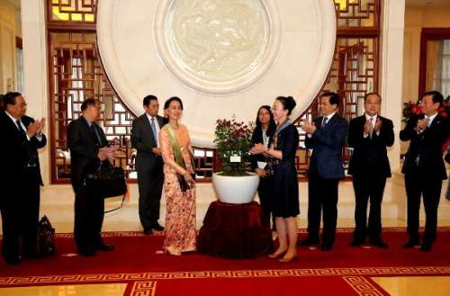 “昂山素季玫瑰”是云南省农科院花卉研究所自2012年4月起在花卉所的玫瑰育种基地,采用玫瑰品种“香淡粉”与“花房”杂交,历经4年精心培育出的新品种。“昂山素季玫瑰”优雅高贵,是爱、友谊、勇气和献身精神的化身。该品种为直立窄灌木,植株高度达60厘米至80厘米,多头花朵玫红色,花型为盘状中花型,花径4厘米至5厘米,花色鲜艳、花型漂亮。该品种各性状优异、栽培表现稳定,可盆栽和庭院种植观赏,宜亚热带、温带地区露地或保护地栽培。