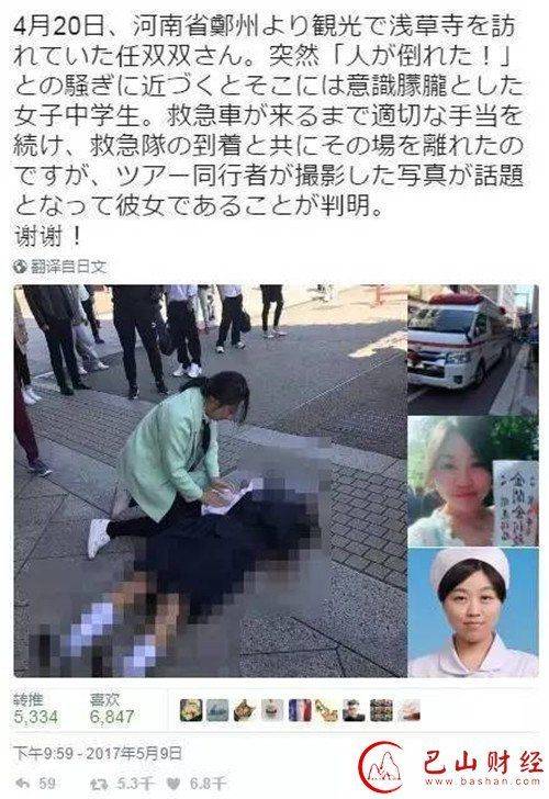 也许对于这位护士姐姐来说,救人不过是出于职业习惯,但她的行为却让日本网友非常感动。