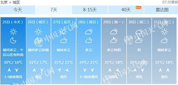 据北京七天预报显示,明天到周末,升温晴热依然是天气舞台的主旋律,周末两天京城或再现35℃的高温天,“炙烤模式”将重启。