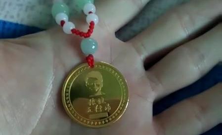 微信正聊着,张灿给记者发来一个视频,摇晃着一个纽扣大小的金色的硬币,上面刻的是“张健五行币”,并且有一个男子的头像。