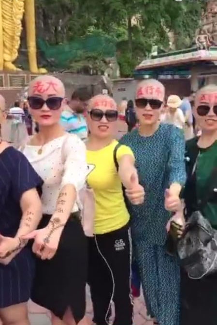 另外一段视频显示,七八个光头青年女子在头上用彩色笔写着“五行币”,一边自报家门,一边热切地表示“爱老大张健。”