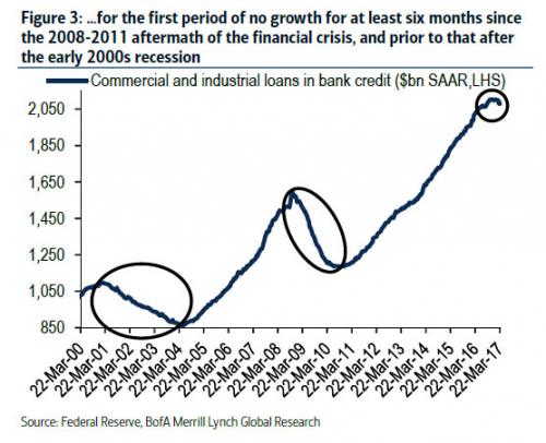 分析师指出,从2008年至2011年美国金融危机结束以来,这也是第一次美国商业和工业部门信贷总额出现连续六个月零增长。再上一次美国商业和工业部门信贷总额零增长的时期还要追溯到本世纪初的美国经济衰退。