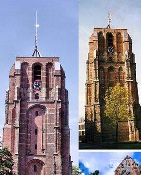 位于荷兰弗里斯兰省的德霍弗教堂塔楼始建于1529年,由于其设计师Jacob van Aaken在1532年去世,1533年由于塔身开始倾斜被迫终止修建。考古学家推测其倾斜原因可能是其设计师的设计问题。
