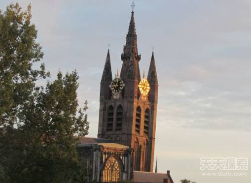 老教堂斜塔是一座哥特式教堂的钟楼,位于荷兰代尔夫特的中心。斜塔为砖砌而成,塔高74.676米,塔尖倾斜1.98米。斜塔建于1246年,作为圣巴塞缪斯大教堂的钟楼,塔内有重达9吨的古钟。由于钟楼是在运河河床附近建设,从而导致倾斜。