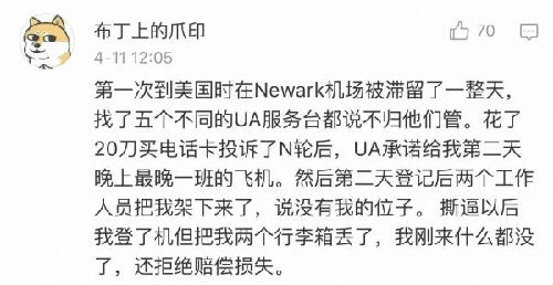 中国网友吐槽“乘坐美联航血泪史”