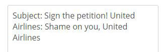 该网上请愿的主题是:“你真丢脸,美联航。”