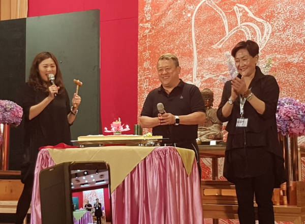 曾志伟在台上双手合十多谢大家心意的同时,也祝愿大家身体健康。大会司仪崔建邦及梅小惠带领众人齐齐唱生日歌,两人更兼任拍卖官,在活动中筹得450万善款,用于修建寺院。