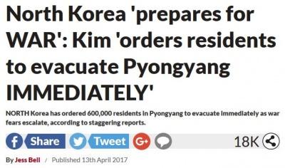 该报援引专家观点称,鉴于目前朝美两国日益紧张的局势,朝鲜确实极有可能命令民众撤离。