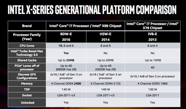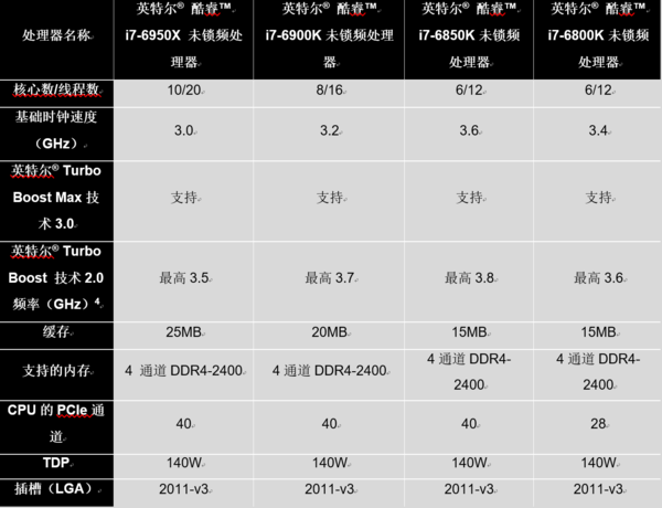 这款10核处理器主要针对4K视频的处理,以及多个VR视频的合成和实时渲染等对性能有极端要求的用户。另外,英特尔早在2011年就已经推出了10核的Xeon至强处理器,针对服务器以及工作站等商用客户。