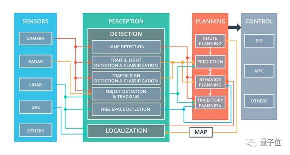 检测模块需要从传感器的环境信息中检测车辆外部的物体,包括信号灯的检测与分类、物体检测与追踪和自由空间探测。