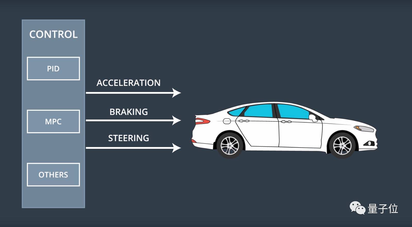 控制系统将路径点作为输入信息,在决策系统的帮助下控制车辆速度。之后,控制系统将路径点和速度等信息传递给控制器。为了实现预定轨迹,控制器需要规划方向盘、加速、刹车等部件的动作。
