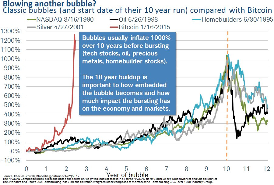 席勒说:“我并不像看起来那么消极,但我认为,目前市场不断推高比特币的价格就像其他的泡沫例子一样,本质上是一样的。吸引所有人兴趣的是故事的质量,而且这可能是不可持续的。”