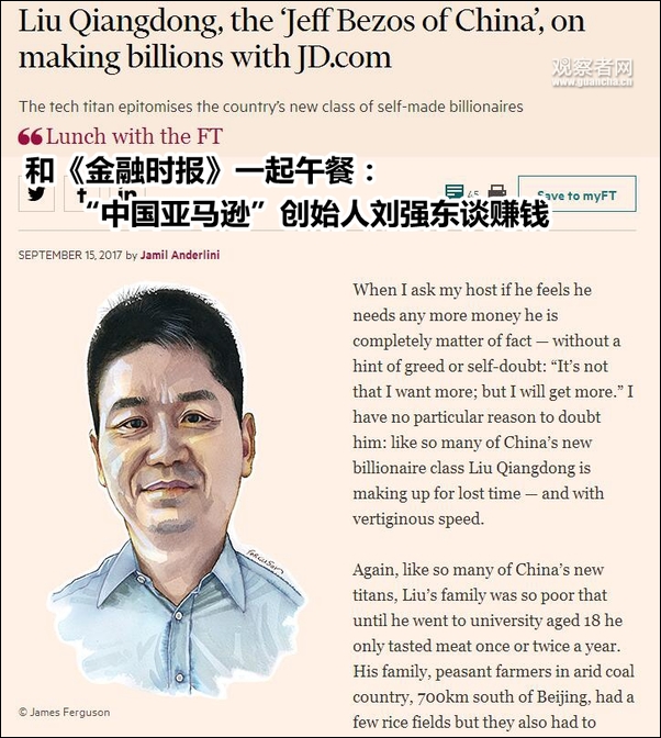 “我没有‘想’赚更多钱,财富自己就会增殖”,刘强东的回答让吉密欧感到无法反驳,因为中国的亿万富翁阶级现在正以令人吃惊的速度冒出来,仿佛要补回他们失去的时间。