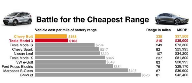 众所周知,衡量电动汽车造价竞争力的惟一重要因素是电池的数量和使用成本。根据这些年来的研究,特斯拉是众多车厂中最重视其电池初始容量的一家,例如最近一份来自特斯拉的报告表明,特斯拉的电池可以做到 190美元/千瓦时的低价,但这与通用汽车Bolt所搭载的189美元/千瓦时电池组成本相比已经没有优势可言。