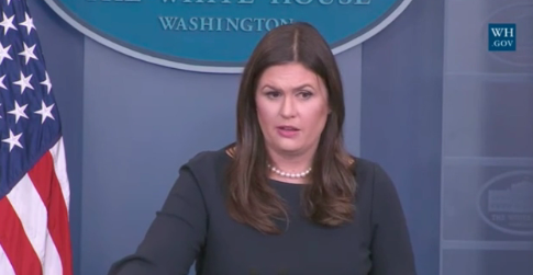 白宫新闻秘书莎拉·桑德斯25日在记者会上(视频截图)