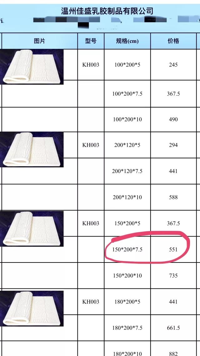 乳胶制品厂家提供的报价单,红圈内是记者询问标价为8580元那款床垫的出厂价