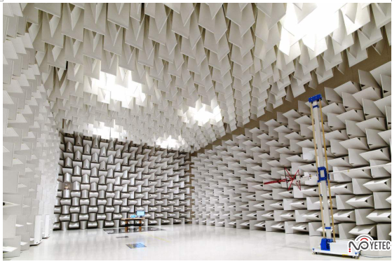 10m法电波暗室更能模拟开阔场环境,对于大型设备而言是最佳的选择。在屏蔽室的天花板和四面墙贴上吸波材料,地面的吸波材料采用活动式铺设
