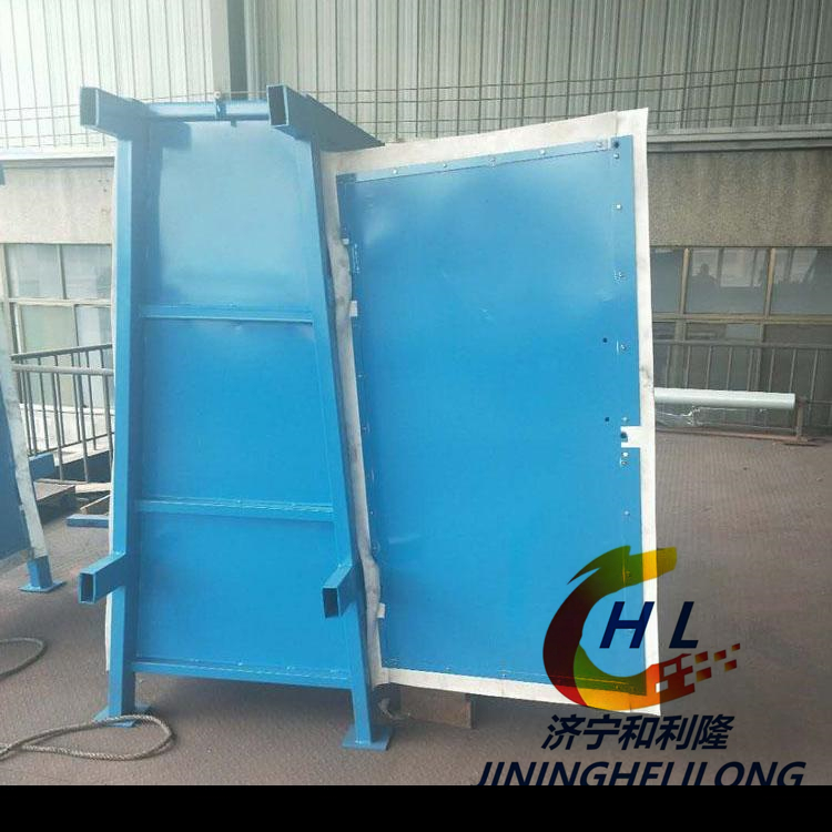 矿用防瓦斯突出风门分电液型和气动型两种。每套防瓦斯突出风门由一道复式风门主体和一套电液型(或 气动型)控制系统组成,每道复式风门主体设有一道正向风门和一道反向风门。正向风门与反向风门距离 800mm以上,两道风门组成高强度框架式焊接结构。