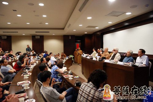 菩萨在线台湾讯 2015两岸笔会一行来自大陆、台湾、香港、澳门的70多名作家、画家、书法家、摄影家,2015年5月7日齐聚佛光山,佛光山开山星云大师盛情接待与众接心,谈佛教与中华文化密不可分的关系。
