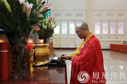 礼清智宗法师(图片来源:凤凰佛教 摄影:普陀山佛教协会)