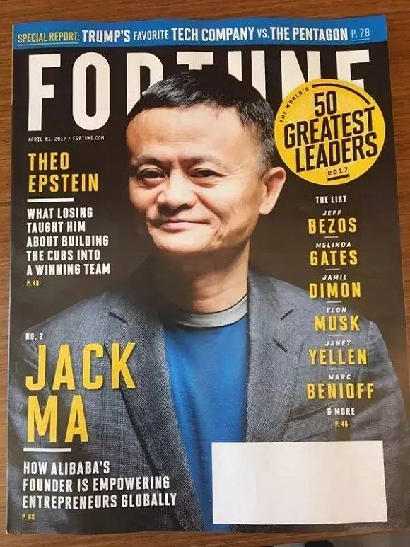 美国杂志《财富》公布了2017年全球领袖人物排行榜,阿里集团马云排名第二。4月1日的杂志特写,《财富》选用的标题是,“马云,阿里巴巴创始人如何赋能全球企业”。