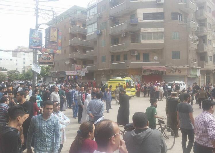极端组织“伊斯兰国”宣称制造了这起袭击。事发于距离开罗北部90公里的坦塔,有人引爆了一枚藏于圣乔治教堂(St George Church)入口处的炸弹,适逢当时是宗教节日“圣枝主日”(Palm Sunday),大批信徒聚集,因此造成多人死伤。其后,坦塔的警局也遭到炸弹袭击。图为教堂外起火,民众纷纷逃避。