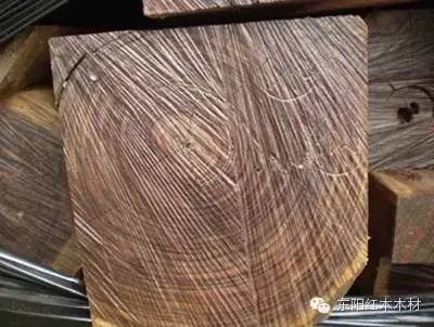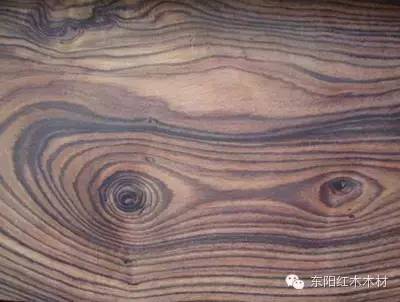 构造特征:散孔材至半环孔材。生长轮颇明显。心材新切面紫红褐或深红褐,常带黑色条纹。管孔在肉眼下可见至明显,弦向直径最大208μm,平均114μm;数甚少至略少,2~1 2 个/mm2。轴向薄壁组织肉眼下可见,主为傍管带状(多数宽1~数细胞)及聚翼状。木纤维壁厚。木射线在放大镜下明显;波痕可见;射线组织同形单列(甚少)及多列(2~3 列,4 列偶见)。新切面辛辣气浓郁,久则微香;结构细;纹理斜或交错;气干密度0.82~O.94 g/CM3。