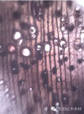 这一特点可与其他黄檀属酸枝木相区别(伯利兹黄檀除外);而其以双列为主的射线又是与伯利兹黄檀(Dalbergia stevensonii,单列射线为主)和军刀豆(Machaerium scleroxylon,单列射线)相区分的依据。