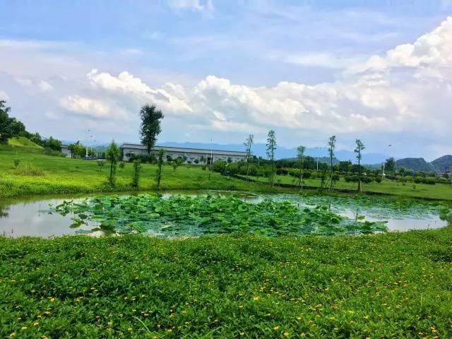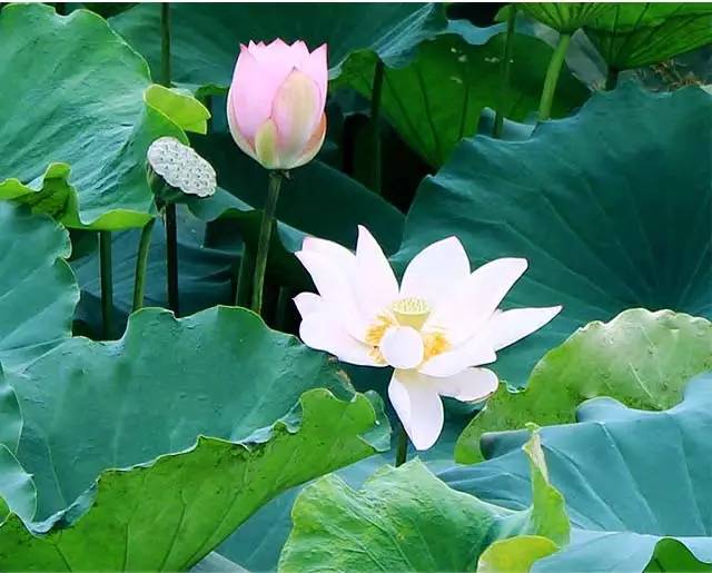纯白的云朵,湛蓝的天空,碧绿的荷塘