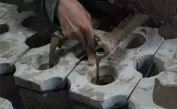 灌浆是将含有石蜡的泥浆加热注入石膏模中,冷却后将石膏模脱开,便可得到壶坯,经镶嘴,把并脱蜡后烧制成壶。