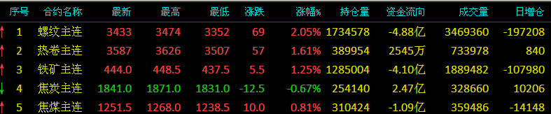 受此影响,贸易战的利空有所缓和,黑色系再次把高库存、低需求的基本面抛之脑后,在环保炒作下,开启了反弹修复之路。截止收盘,螺纹主力1805合约最高涨至3474,尾盘收于3433,上涨69。热卷1805收于3587,最高涨破3600,收盘涨幅达1.61%。