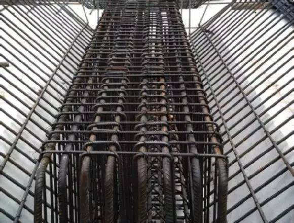 3、 绑扎丝扣无漏绑,扎丝朝里弯曲