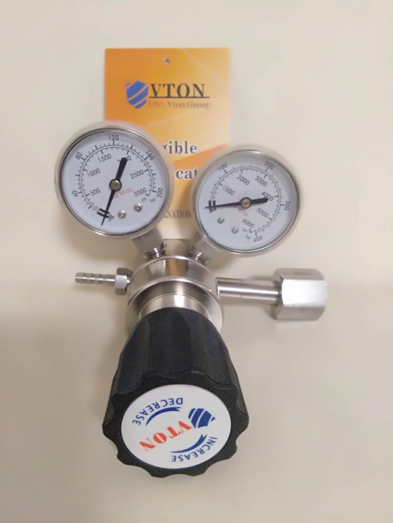 美国威盾VTON品牌高纯气体一般都是贮存在专用的高压气体钢瓶中,使用时通过减压阀使气体压力降至实验所需范围,再经过其它控制阀门细调,使气体输入使用系统。由于高纯气体气瓶内压力较高,而气焊和气割和使用点所需的压力却较小,所以需要用减压器来把高纯气体储存在气瓶内的较高压力的气体降为低压气体,并应保证高纯气体所需的工作压力自始至终保持稳定状态。进口高纯气体减压器是将高压高纯气体降为低压气体、并保持输出高纯气体的压力和流量稳定不变的调节装置。