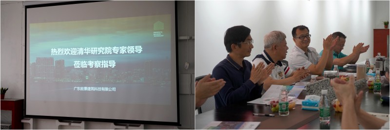 前景建筑科技有限公司董事长兼总经理许俊峰带领公司高管团队对各位专家、领导的来访表示了热烈的欢迎。方主席一行先后观看了前景公司及产品的视频,听取了前景工厂端生产运营情况介绍,视频参观了恩平、儋州两家工厂生产情况,还听取了许俊峰董事长融行业赛道、企业文化、创业历程于一体的《聊聊前景 聊聊创业》的精彩发言。