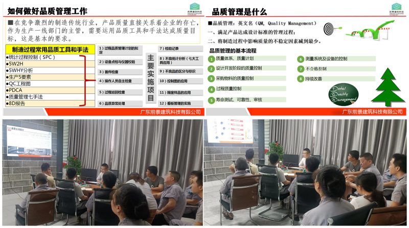 树立“质量是生产出来的,不是检验出来的”思想意识,产品质量要从员工意识提升开始。此次培训使全员对质量要求有了更深层次的了解和认识,提升了作业的标化要求及操作水平,保证了前景建筑科技的生产质量及产品质量。