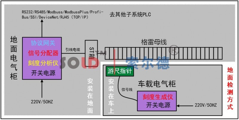 格雷码母线定位系统型号是SOLD-BCK1,系统中的刻度生成仪(兼函数信号发生)按一定的周期发出地址载波信号,经游尺指针发射至格雷母线,地面站的刻度分析仪接收到信号后,解码还原出机车所处格雷码母线处的绝对地址,经控制器处理后由RS232或者RS485输出。武汉索尔德公司所生产的格雷码母线具有以下特点: