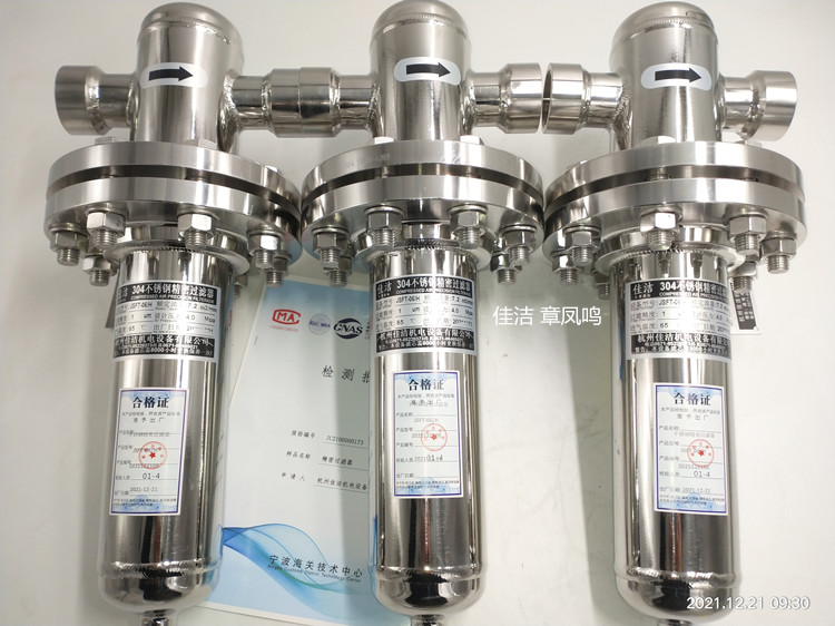 杭州佳洁长期生产食品级不锈钢过滤器,产品经第三方检测认证,公司生产的滤芯滤材经第三方按FDA标准检测认证,各个微米,颗粒物数量经第三方检测认证,除尘、除油水、除菌效果经第三方检测认证。杭州佳洁提供不锈钢过滤器GMP认证、AIB认证材料,帮助企业顺利通过生产认证考核。