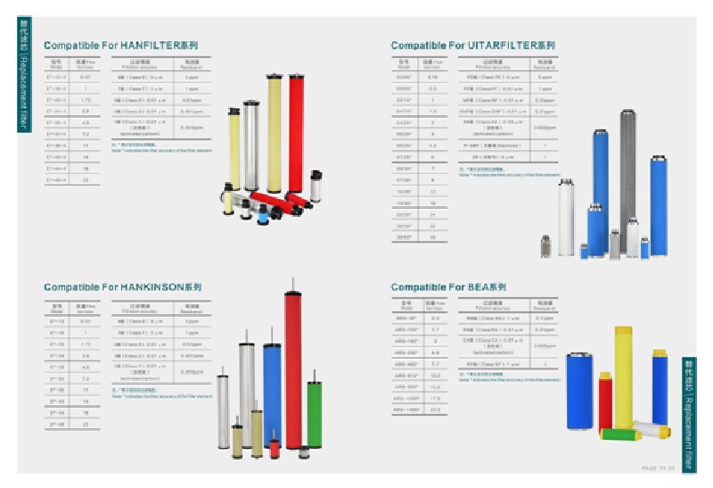【2】国产品牌滤芯均为我司生产的替代原厂品牌滤芯,其过滤滤材采用德国原装进口HV公司产品,注册商标为“佳洁”牌。本公司涉及的其它品牌均无品牌意义,只是作为产品型号参照和客户选型对照使用。进口滤芯和过滤器为原装进口,有防伪标志。我司长期为国内各大企业贴牌生产各种款式的压缩空气精密过滤器滤芯。欢迎来电咨询!精密滤芯