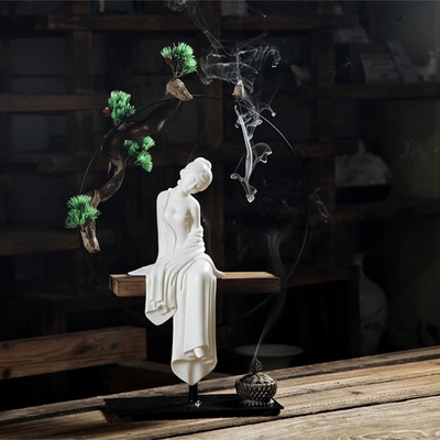 - 风化木艺术根雕装饰陶瓷品 仕女人物