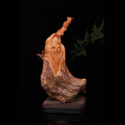 - 正宗太行崖柏摆件 随形风化料手工雕刻寿星 根雕艺术收藏品