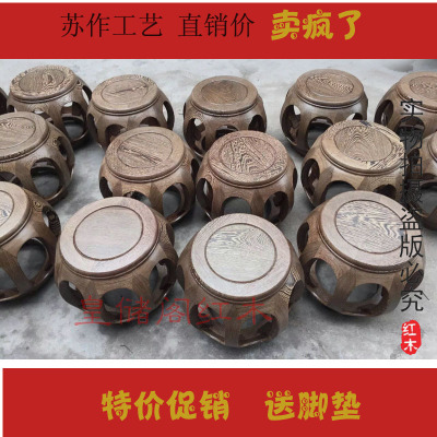 - 鸡翅木鼓凳 全实木明清仿古休闲圆凳 红木家具