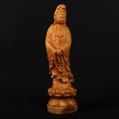 - 太行崖柏根雕手工刻观音菩萨礼品工艺品礼物居家摆件