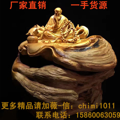 - 太行崖柏根雕酒店老料荷叶滴水观音礼品工艺品礼物居家摆件