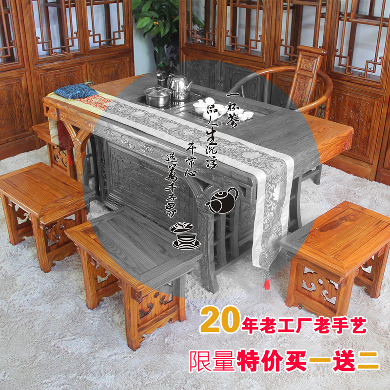 - 厂家直销明清古典实木功夫茶桌客厅家具仿古泡茶将军台茶桌椅组合