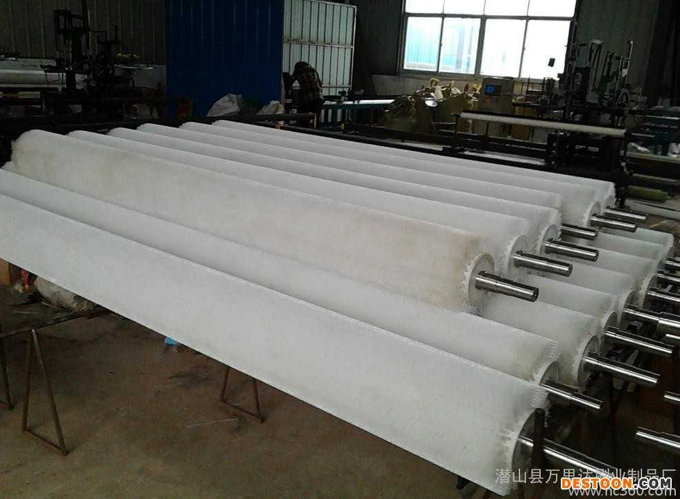 纺织业:产品有定型机毛刷轮、磨毛机毛刷、刷毛机毛刷、精梳机毛刷、棕毛刷、细纱机毛刷、抛光布轮。烧毛机专用刷辊,采用猪鬃或尼龙等刷丝材料,辊轴使用45#圆钢+注塑,纺织出来的坯布上有很多多余的毛茸,烧毛辊的用途就是将这些多余的毛茸刷出来,在刷辊下方有明火将这些毛茸烧掉;分幅机开幅辊,分幅辊采用45#圆钢的辊轴、尼龙等材料的刷毛制成,由中间往两边呈人字斜方式植毛,刷辊送布入卷,人字斜的作用就是将布往两边刷使其顺直;针板压边刷轮,中间为注塑体,刷毛大多为猪鬃,用途就是将布边通过刷毛的压力压到机器的针板上去。